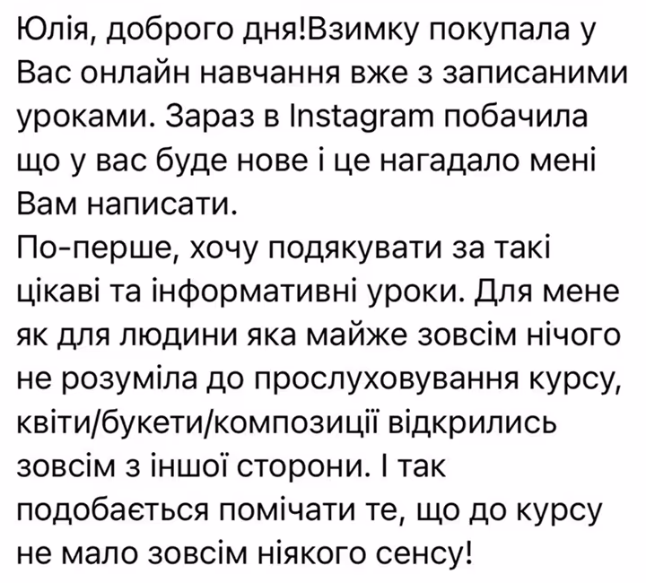 Для тих флористів, що не проходили повноцінне навчання, отримували знання з ютубу, міні курсів, безкоштовних лекцій та точкових майстер класів. Які зараз хочуть отримати повноцінне навчання